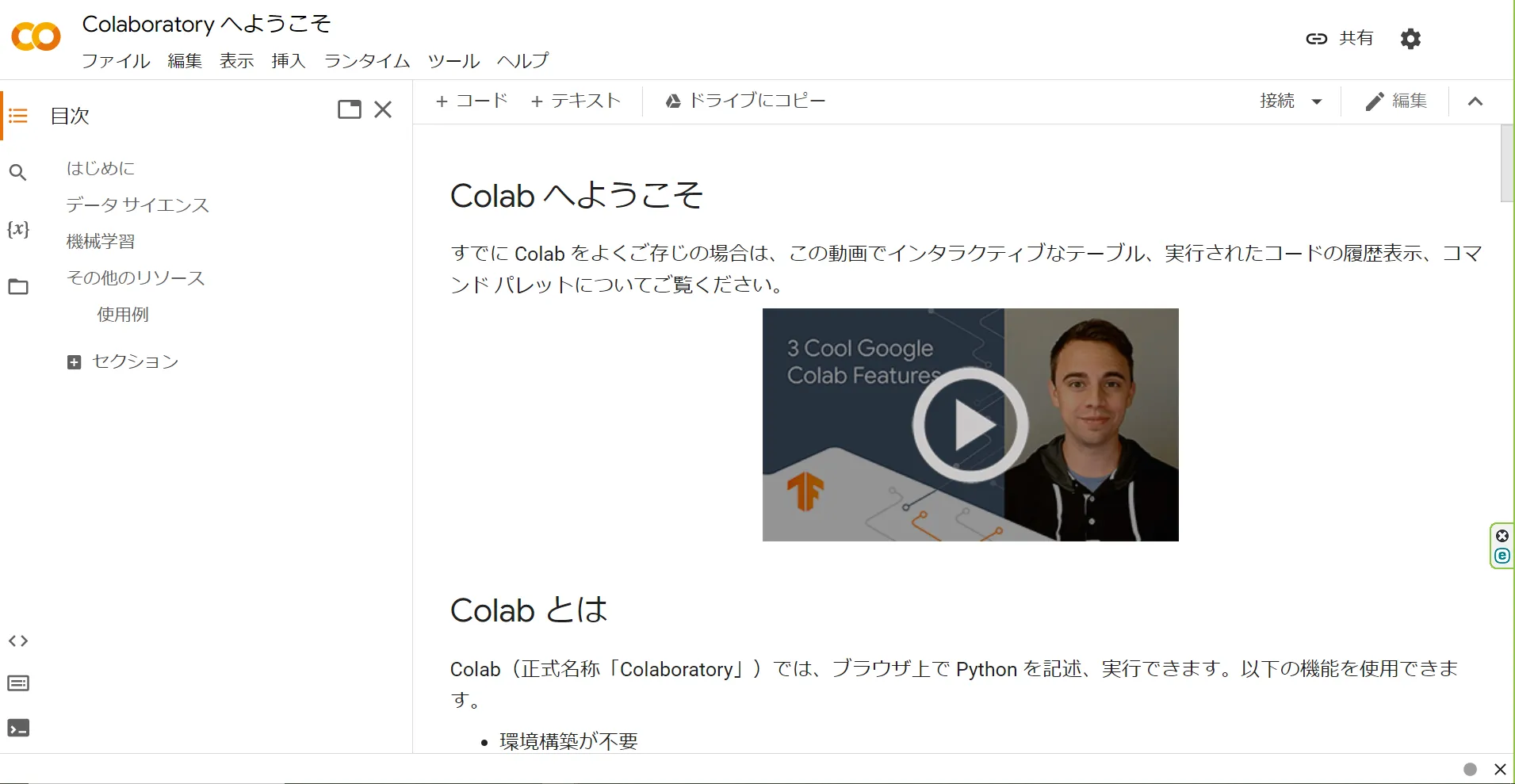 Google Colaboratoryと検索すると,上図のようなページが出てきます.