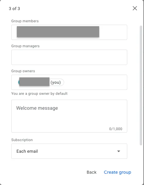 Enter the email addresses of the members you want to add to the group under “Group members”.