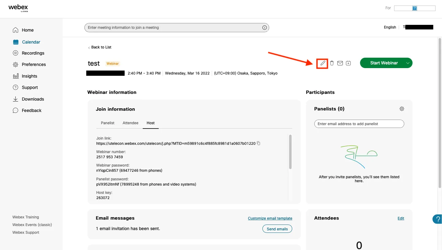Editing a Webex Webinar