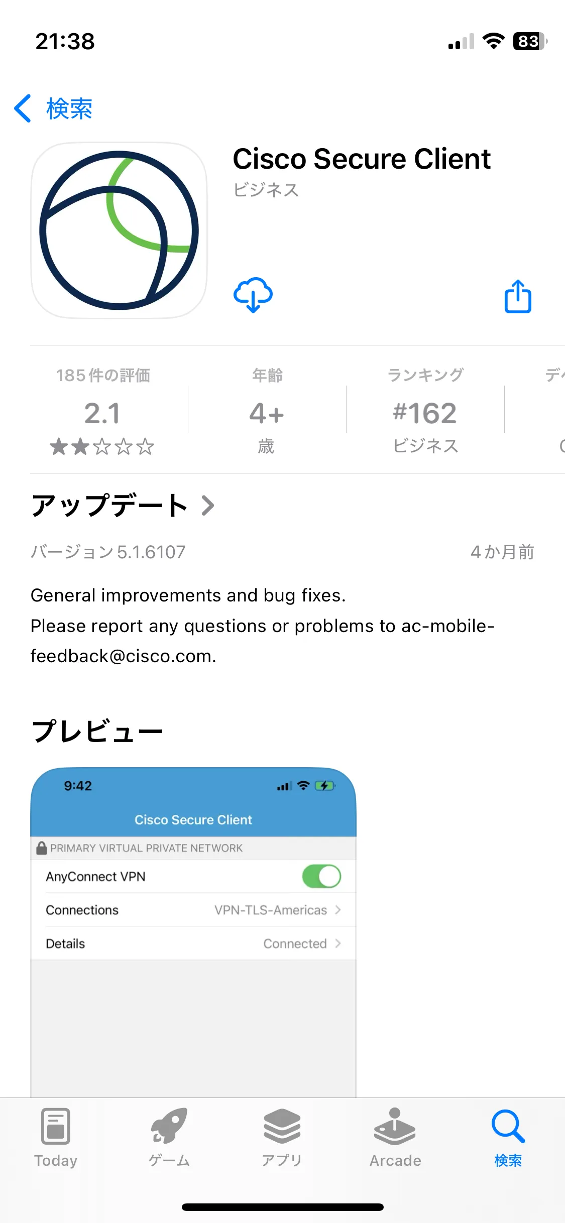 手順A: App Storeにアクセスし,Cisco社のCisco Secure Clientというアプリをインストールします.