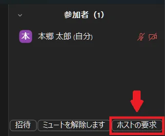 - 参加者欄の下部にある「ホストの要求」を選択してください.