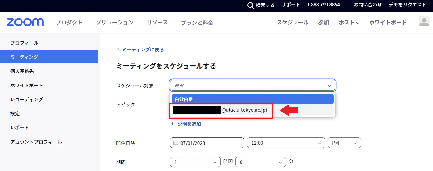 - 「ミーティングをスケジュール」を選択してください.